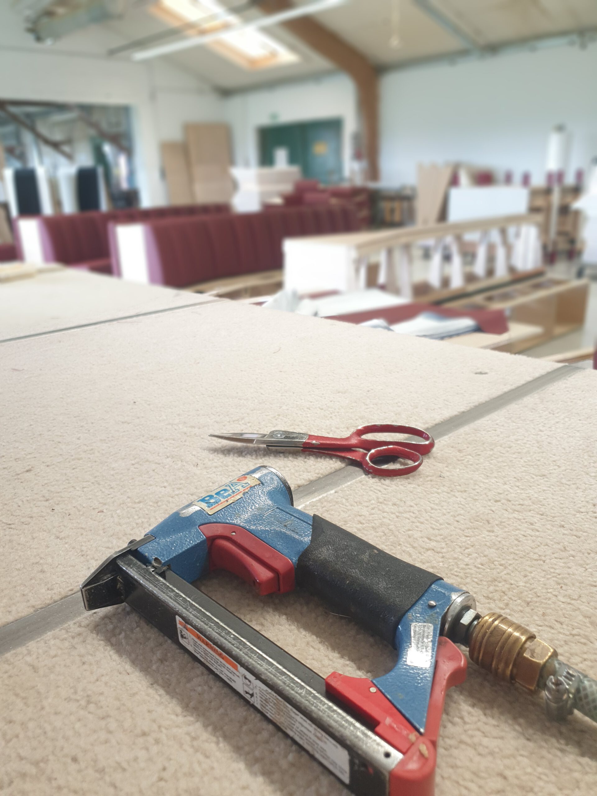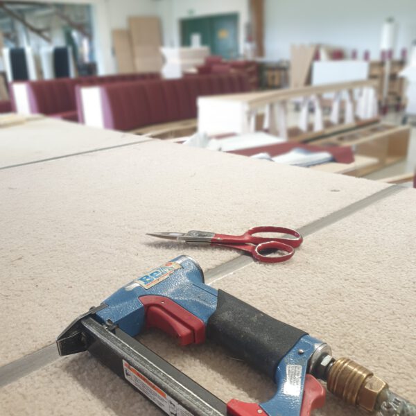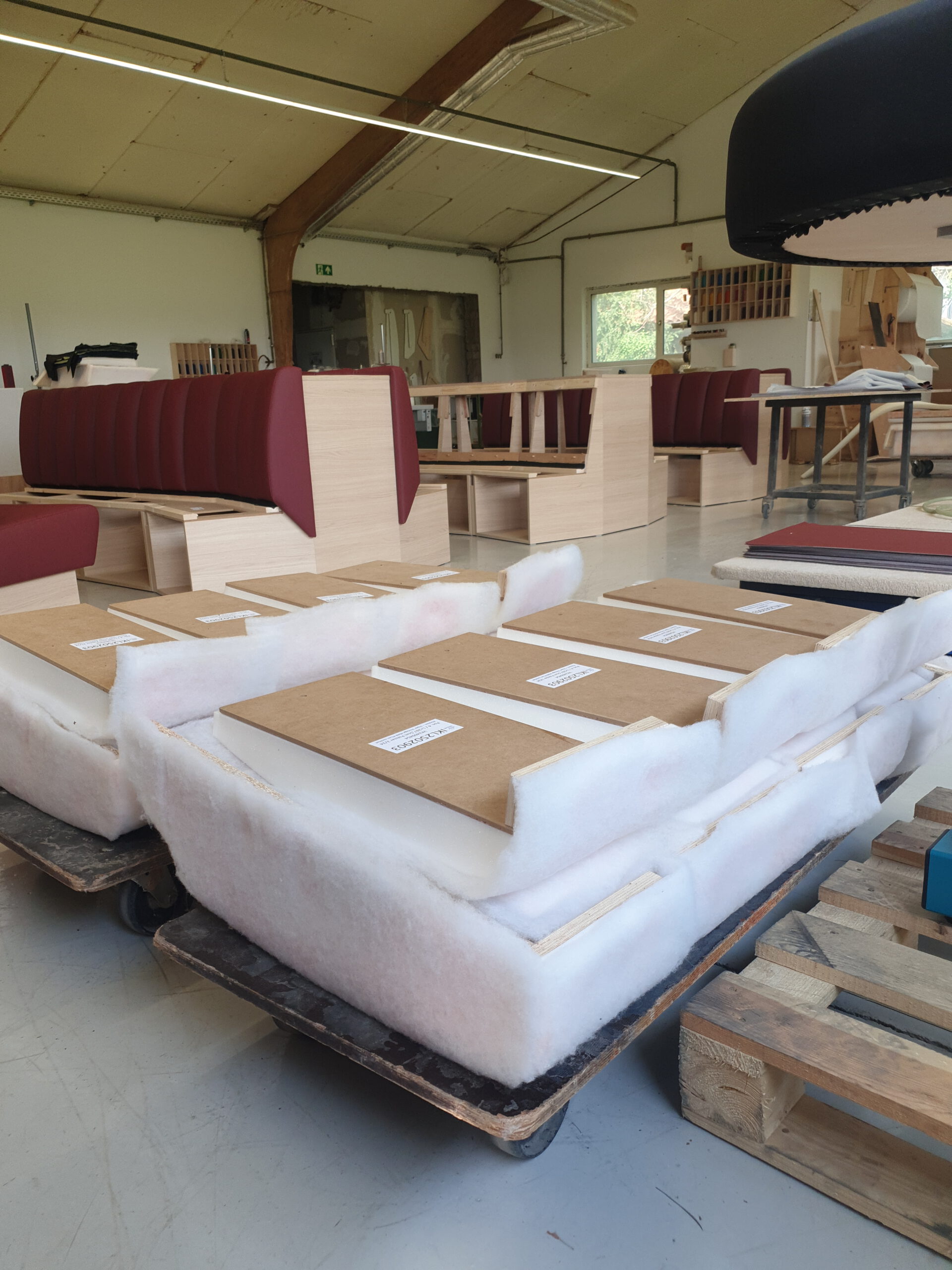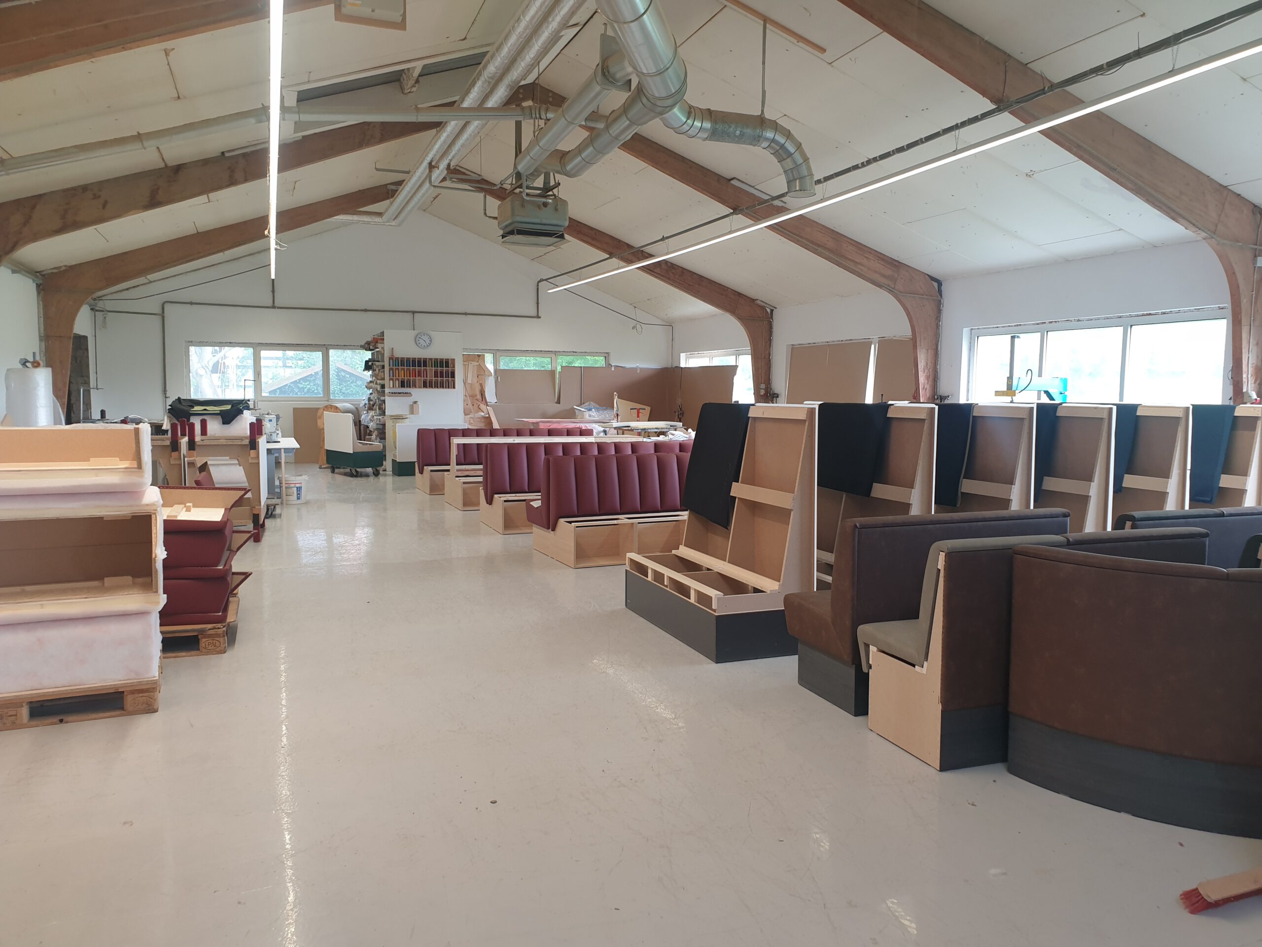 Alte Gebäude werden abgerissen, um Platz für die neue Halle zu schaffen. Wir richten unsere eigene Polsterei ein!
